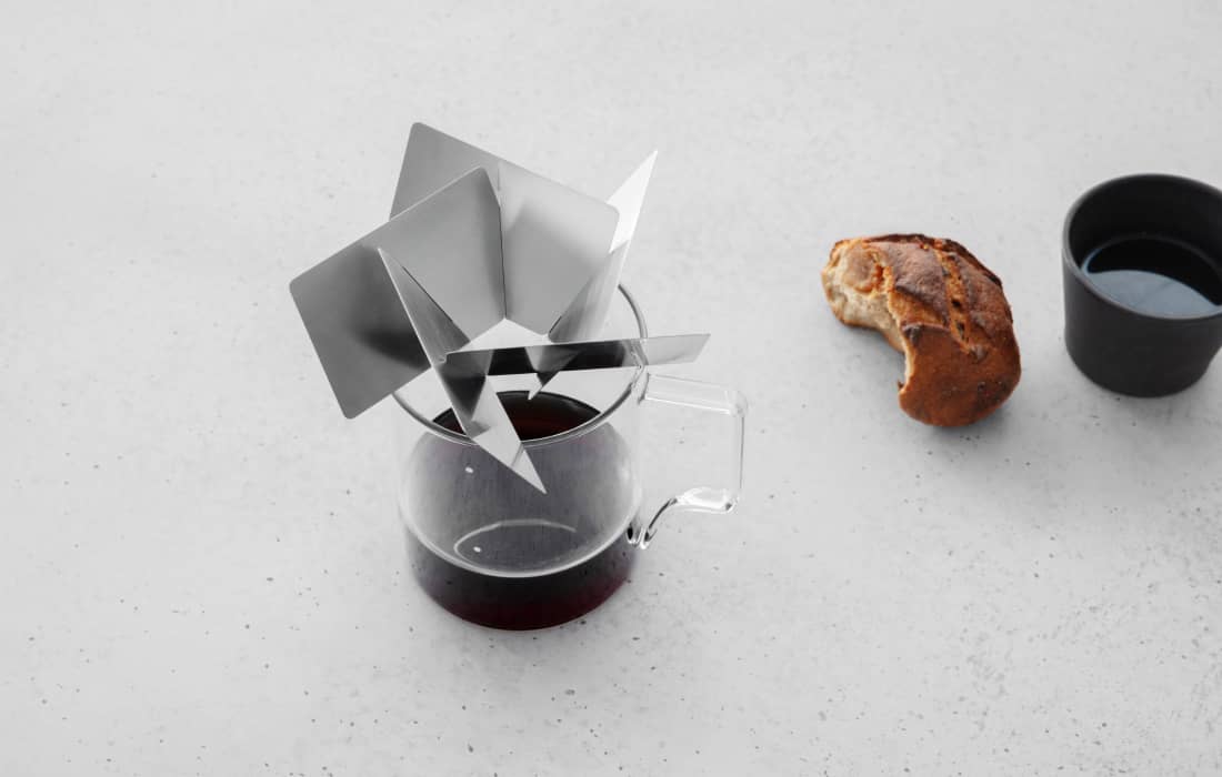 カード状のステンレス板を5枚組み合わせてできるコーヒードリッパー